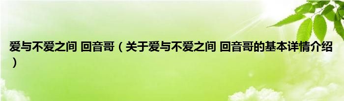 本文关于爱与不爱之间 回音哥的基本详情介绍就讲解完毕,希望对大家有所帮助。