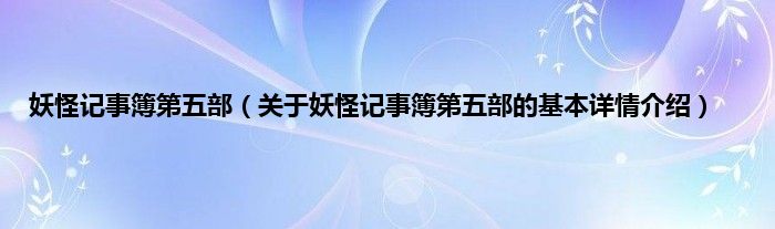 本文关于妖怪记事簿第五部的基本详情介绍就讲解完毕,希望对大家有所帮助。