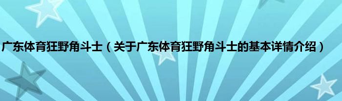 本文关于广东体育狂野角斗士的基本详情介绍就讲解完毕,希望对大家有所帮助。