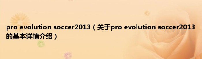 本文关于pro evolution soccer2013的基本详情介绍就讲解完毕,希望对大家有所帮助。