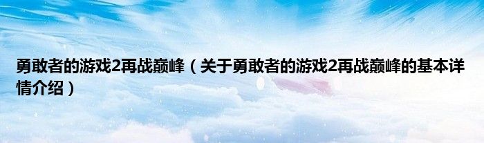 本文关于勇敢者的游戏2再战巅峰的基本详情介绍就讲解完毕,希望对大家有所帮助。