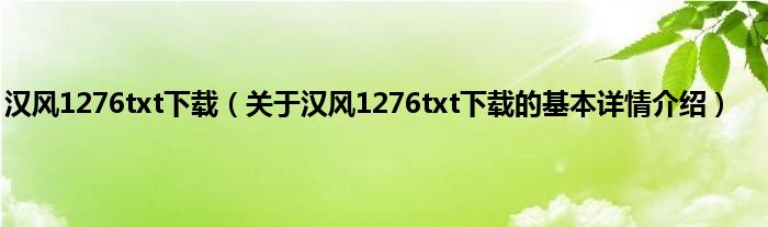 本文关于汉风1276txt下载的基本详情介绍就讲解完毕,希望对大家有所帮助。