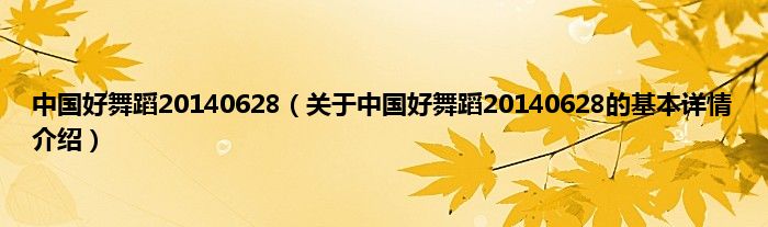 本文关于中国好舞蹈20140628的基本详情介绍就讲解完毕,希望对大家有所帮助。
