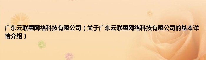 本文关于广东云联惠网络科技有限公司的基本详情介绍就讲解完毕,希望对大家有所帮助。