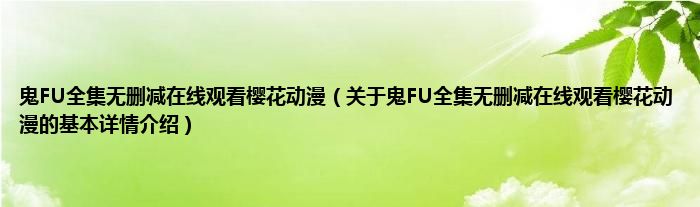 鬼FU全集无删减在线观看樱花动漫(关于鬼FU全集无删减在线观看樱花动漫的基本详情...