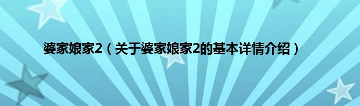 本文关于婆家娘家2的基本详情介绍就讲解完毕,希望对大家有所帮助。