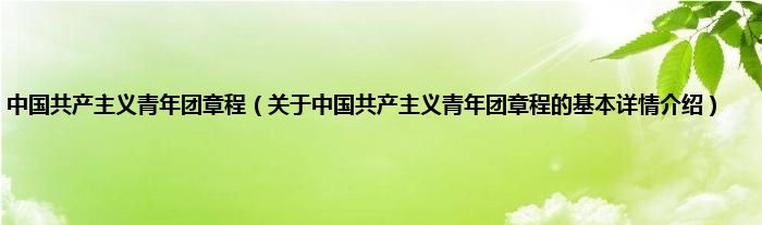 本文关于中国共产主义青年团章程的基本详情介绍就讲解完毕,希望对大家有所帮助。