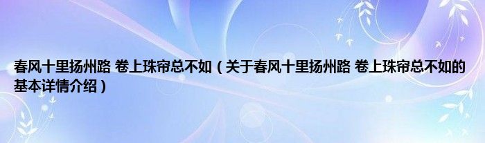 本文关于春风十里扬州路 卷上珠帘总不如的基本详情介绍就讲解完毕,希望对大家有所帮助。