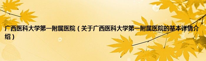 本文关于广西医科大学第一附属医院的基本详情介绍就讲解完毕,希望对大家有所帮助。