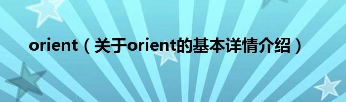 大家好我是小蝌蚪,orient,关于orient的基本详情介绍很多人还不知道,那么现在让我们一起来看看吧!