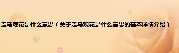 本文关于走马观花是什么意思的基本详情介绍就讲解完毕,希望对大家有所帮助。