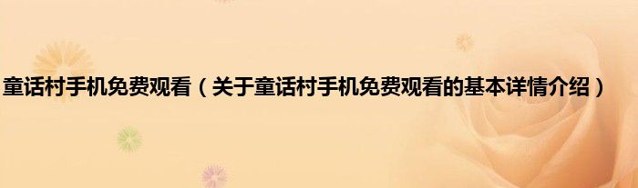 童话村手机免费观看(关于童话村手机免费观看的基本详情介绍)