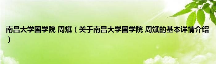 本文关于南昌大学国学院 周斌的基本详情介绍就讲解完毕,希望对大家有所帮助。