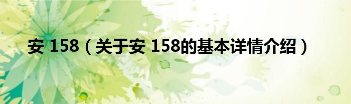 本文关于安 158的基本详情介绍就讲解完毕,希望对大家有所帮助。