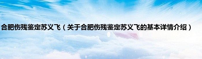 本文关于合肥伤残鉴定苏义飞的基本详情介绍就讲解完毕,希望对大家有所帮助。