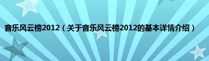 本文关于音乐风云榜2012的基本详情介绍就讲解完毕,希望对大家有所帮助。