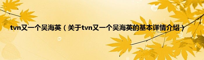 本文关于tvn又一个吴海英的基本详情介绍就讲解完毕,希望对大家有所帮助。