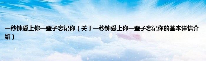 本文关于一秒钟爱上你一辈子忘记你的基本详情介绍就讲解完毕,希望对大家有所帮助。