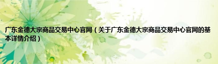 本文关于广东金德大宗商品交易中心官网的基本详情介绍就讲解完毕,希望对大家有所帮助。
