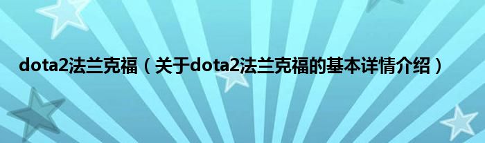 本文关于dota2法兰克福的基本详情介绍就讲解完毕,希望对大家有所帮助。