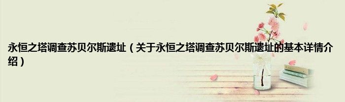 大家好我是小蝌蚪,永恒之塔调查苏贝尔斯遗址,关于永恒之塔调查苏贝尔斯遗址的基本详情介绍很多人还不知道,那么现在让我们一起来看看吧!