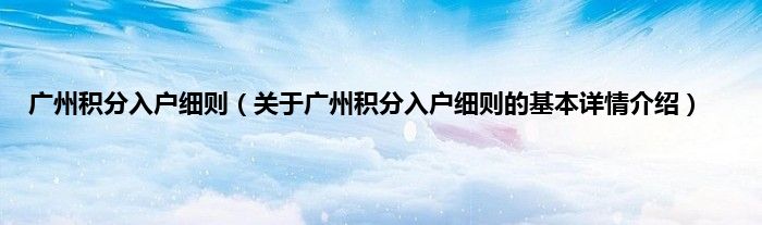 本文关于广州积分入户细则的基本详情介绍就讲解完毕,希望对大家有所帮助。