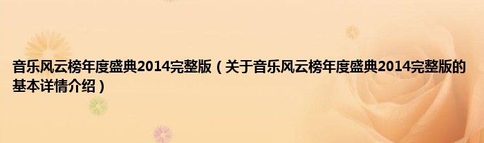 本文关于音乐风云榜年度盛典2014完整版的基本详情介绍就讲解完毕,希望对大家有所帮助。