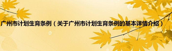 本文关于广州市计划生育条例的基本详情介绍就讲解完毕,希望对大家有所帮助。