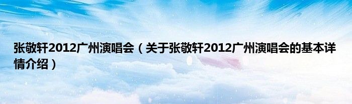 本文关于张敬轩2012广州演唱会的基本详情介绍就讲解完毕,希望对大家有所帮助。