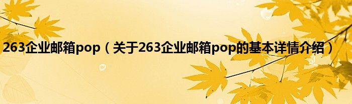 本文关于263企业邮箱pop的基本详情介绍就讲解完毕,希望对大家有所帮助。