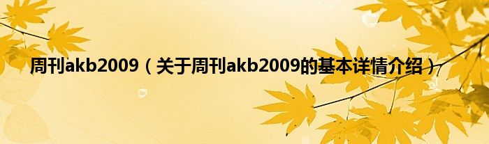 本文关于周刊akb2009的基本详情介绍就讲解完毕,希望对大家有所帮助。