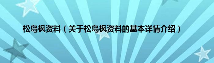 本文关于松岛枫资料的基本详情介绍就讲解完毕,希望对大家有所帮助。