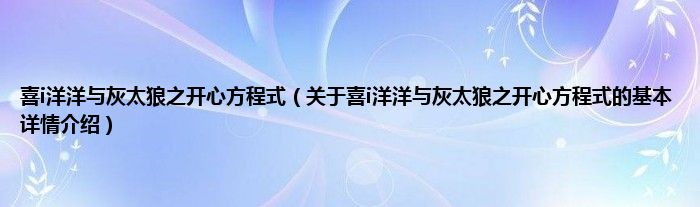 本文关于喜i洋洋与灰太狼之开心方程式的基本详情介绍就讲解完毕,希望对大家有所帮助。