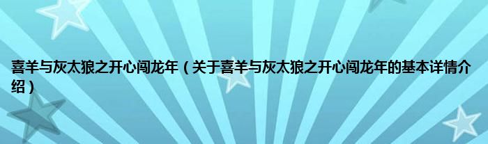 本文关于喜羊与灰太狼之开心闯龙年的基本详情介绍就讲解完毕,希望对大家有所帮助。