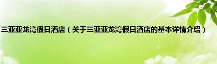 本文关于三亚亚龙湾假日酒店的基本详情介绍就讲解完毕,希望对大家有所帮助。