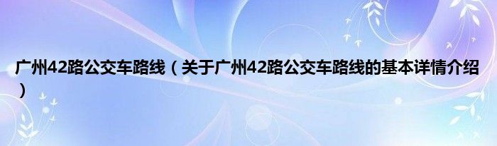 本文关于广州42路公交车路线的基本详情介绍就讲解完毕,希望对大家有所帮助。