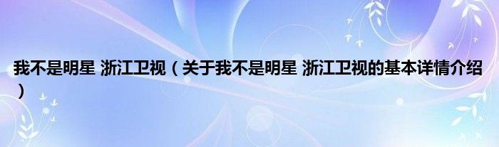 本文关于我不是明星 浙江卫视的基本详情介绍就讲解完毕,希望对大家有所帮助。