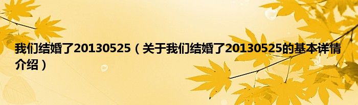本文关于我们结婚了20130525的基本详情介绍就讲解完毕,希望对大家有所帮助。