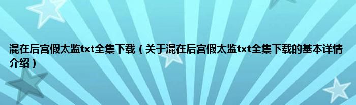 本文关于混在后宫假太监txt全集下载的基本详情介绍就讲解完毕,希望对大家有所帮助。