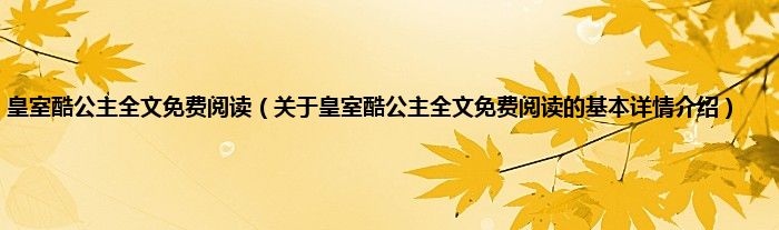 本文关于皇室酷公主全文免费阅读的基本详情介绍就讲解完毕,希望对大家有所帮助。