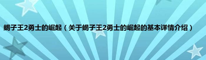 本文关于蝎子王2勇士的崛起的基本详情介绍就讲解完毕,希望对大家有所帮助。