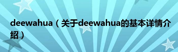 本文关于deewahua的基本详情介绍就讲解完毕,希望对大家有所帮助。