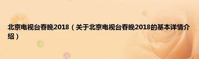 本文关于北京电视台春晚2018的基本详情介绍就讲解完毕,希望对大家有所帮助。