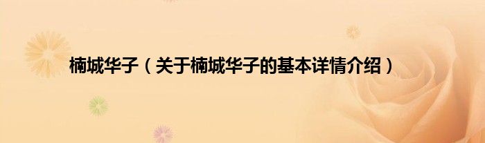 本文关于楠城华子的基本详情介绍就讲解完毕,希望对大家有所帮助。