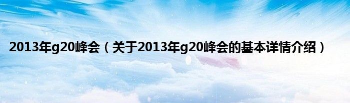 本文关于2013年g20峰会的基本详情介绍就讲解完毕,希望对大家有所帮助。