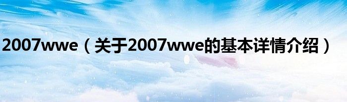 本文关于2007wwe的基本详情介绍就讲解完毕,希望对大家有所帮助。