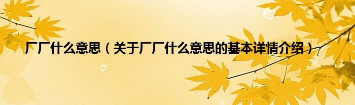本文关于厂厂什么意思的基本详情介绍就讲解完毕,希望对大家有所帮助。