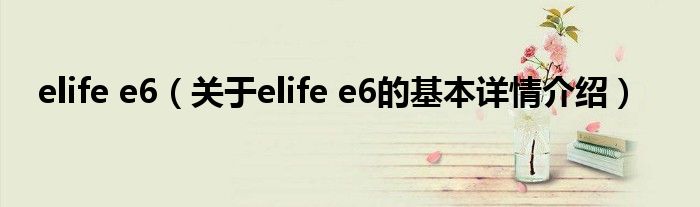 大家好我是小蝌蚪,elife e6,关于elife e6的基本详情介绍很多人还不知道,那么现在让我们一起来看看吧!