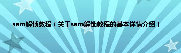 本文关于sam解锁教程的基本详情介绍就讲解完毕,希望对大家有所帮助。