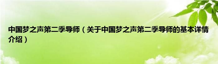 本文关于中国梦之声第二季导师的基本详情介绍就讲解完毕,希望对大家有所帮助。